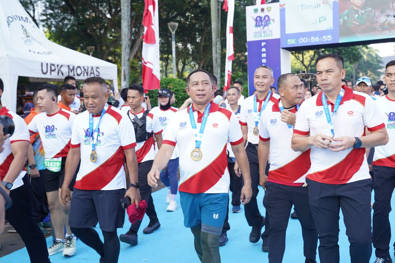 Dengan penuh antusias, para peserta dari berbagai kalangan mulai dari masyarakat umum, pelajar, hingga prajurit TNI dan Polri berlari bersama. Panglima TNI Jenderal TNI Agus Subiyanto pun turut ambil bagian dalam lari ini, menyatu dengan ribuan peserta di lintasan. Ajang ini tidak hanya menjadi wadah sportivitas dan gaya hidup sehat, tetapi juga mencerminkan semangat persatuan dan kecintaan kepada Tanah Air.