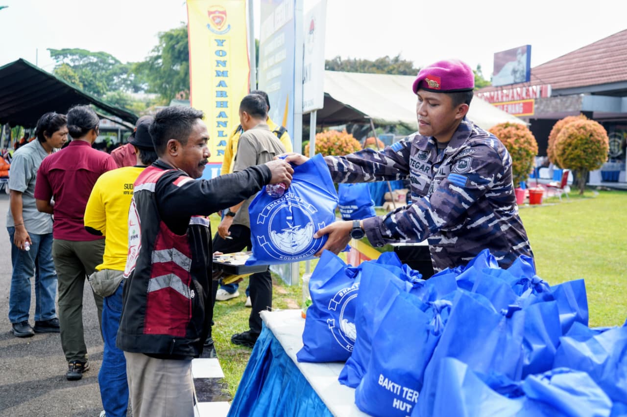 Komandan Kodaeral III Laksamana Muda TNI Uki Prasetia, S.T., M.M. yang diwakili oleh Kepala Kelompok Staf Ahli (Kapok Sahli) Kolonel Laut (P) Hendi Suhendi, S.E., CHRMP meninjau langsung kegiatan bakti sosial kesehatan (Baksoskes) dan makan bergizi gratis (MBG) dalam rangka memperingati Hari Ulang Tahun (HUT) ke-80 TNI di Lapangan Batalyon Marinir Pertahanan Pangkalan (Yonmarhanlan) III, Kelapa Gading, Jakarta Utara, Kamis (25/9).