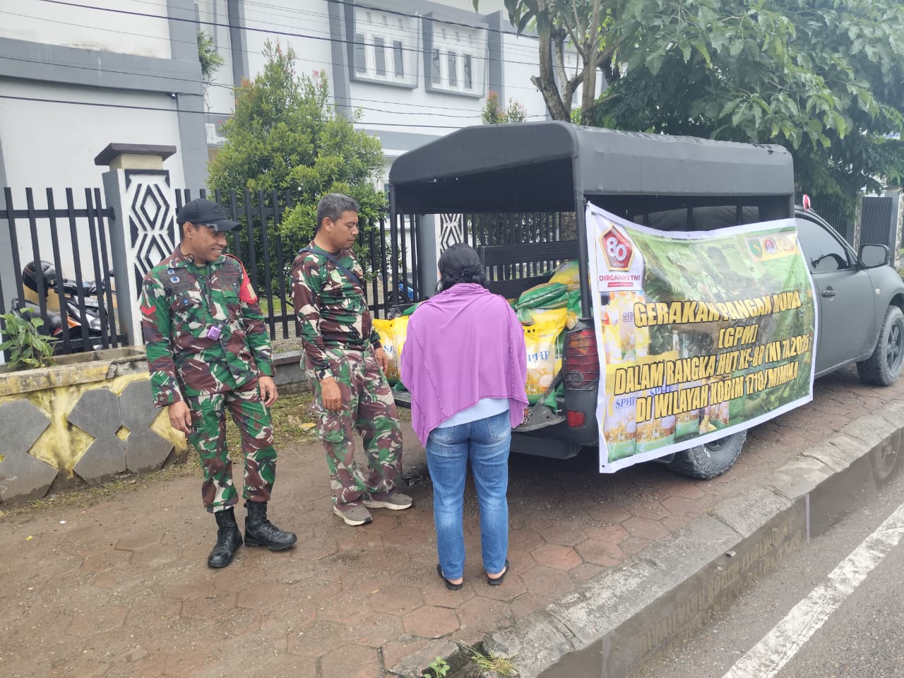 Timika – Wujud bakti nyata jelang peringatan HUT ke-80 TNI dalam membantu menstabilkan harga beras, Kodim 1710/Mimika melalui Koramil jajaran bekerjasama dengan Perum Bulog terus melaksanakan penjualan beras SPHP untuk warga Mimika, Sabtu (27/09/2025).