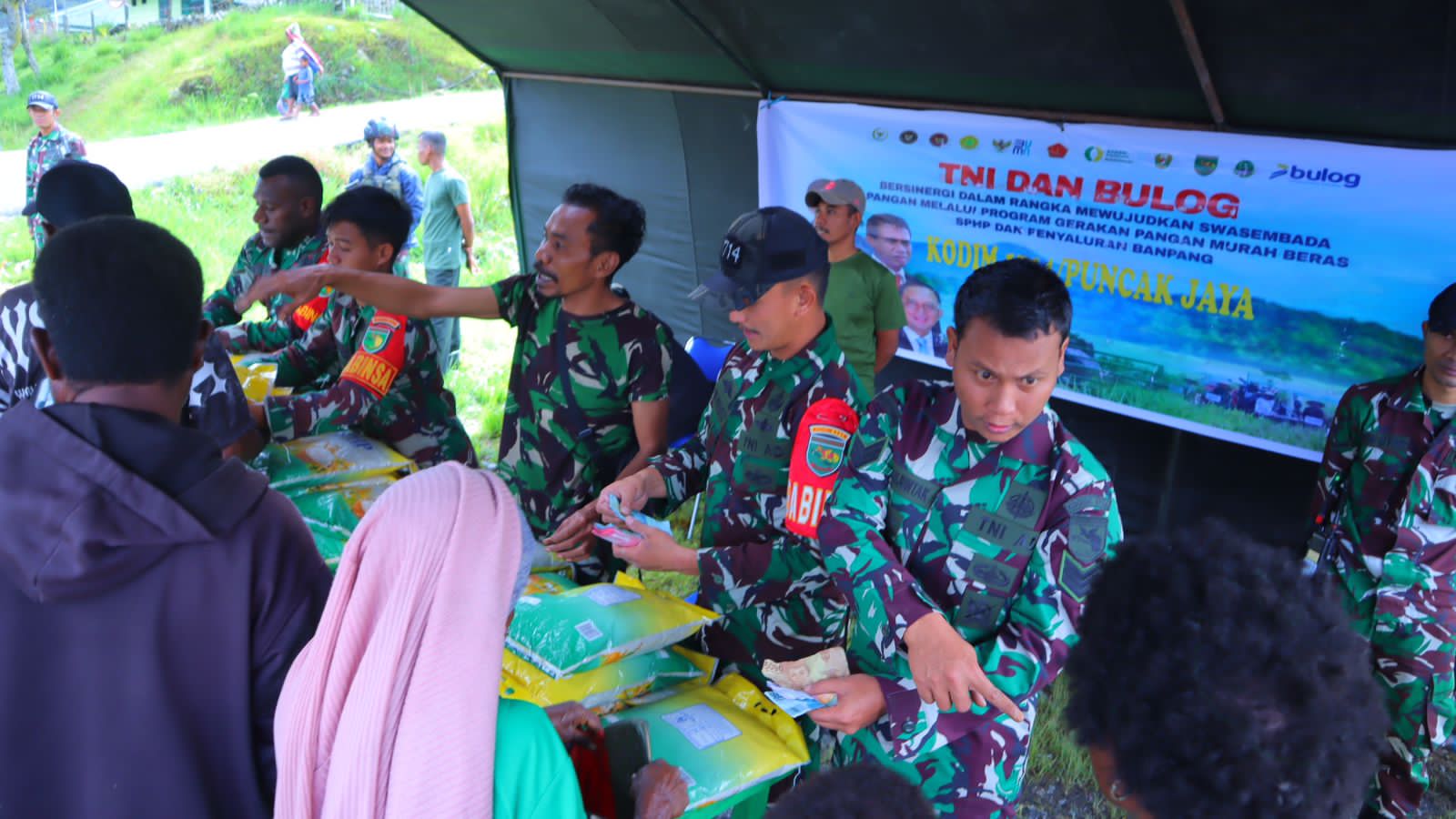 Puncak Jaya – Kodim 1714/Puncak Jaya Menggelar Gerakan Pangan Murah (GPM) sebagai bentuk kepedulian kepada masyarakat. Kegiatan ini merupakan sinergitas antara Kodim 1714/Puncak Jaya dengan Bulog Kab. Kabupaten Jayawijaya dalam mendukung stabilitas pasokan dan harga pangan, khususnya beras. Kegiatan yang berlangsung di bawah Kodim 1714/Puncak Jaya sebelah jalan raya, Distrik Mulia, Kab. Puncak Jaya, Rabu (15/10/2025).