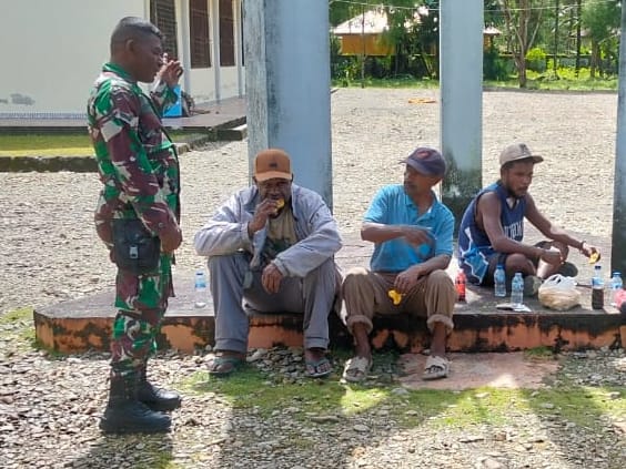Timika – Dalam upaya mempererat hubungan dan membangun komunikasi yang baik dengan masyarakat, Babinsa Koramil 1710-02/Timika, Sertu Ruhuputi, melaksanakan kegiatan Komunikasi Sosial (Komsos) bersama warga binaan di wilayah Kelurahan Kwamki Narama Mimika Baru, Kabupaten Mimika, Rabu (15/10/2025).