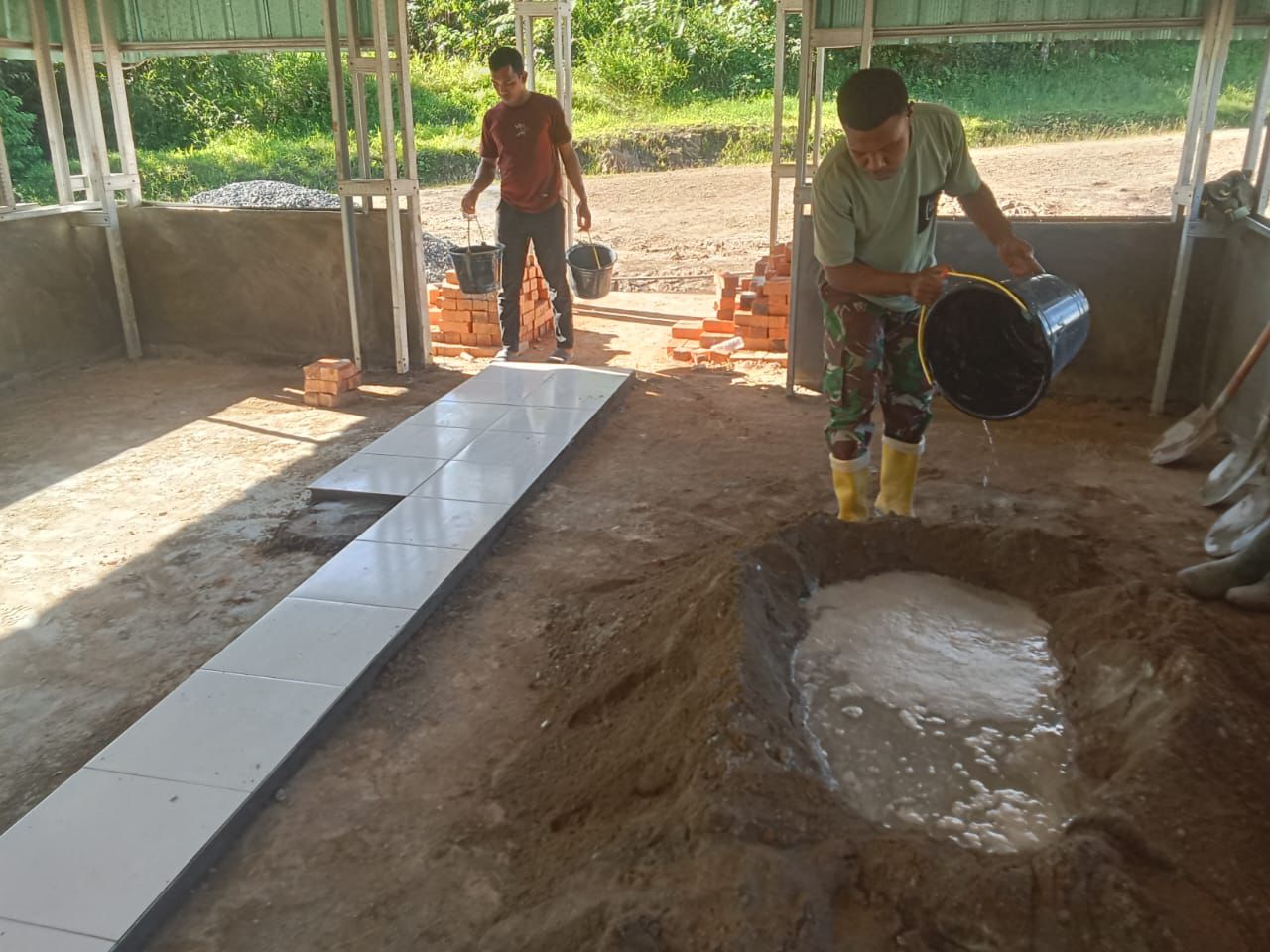 Proses pemasangan keramik dilakukan dengan penuh ketelitian oleh anggota Satgas dibantu masyarakat setempat. Mereka bekerja bahu-membahu mulai dari pagi hingga sore hari agar target penyelesaian dapat tercapai sesuai jadwal. Selain menonjolkan aspek fisik pembangunan, kegiatan ini juga menumbuhkan rasa persaudaraan yang semakin erat antara prajurit TNI dan warga.