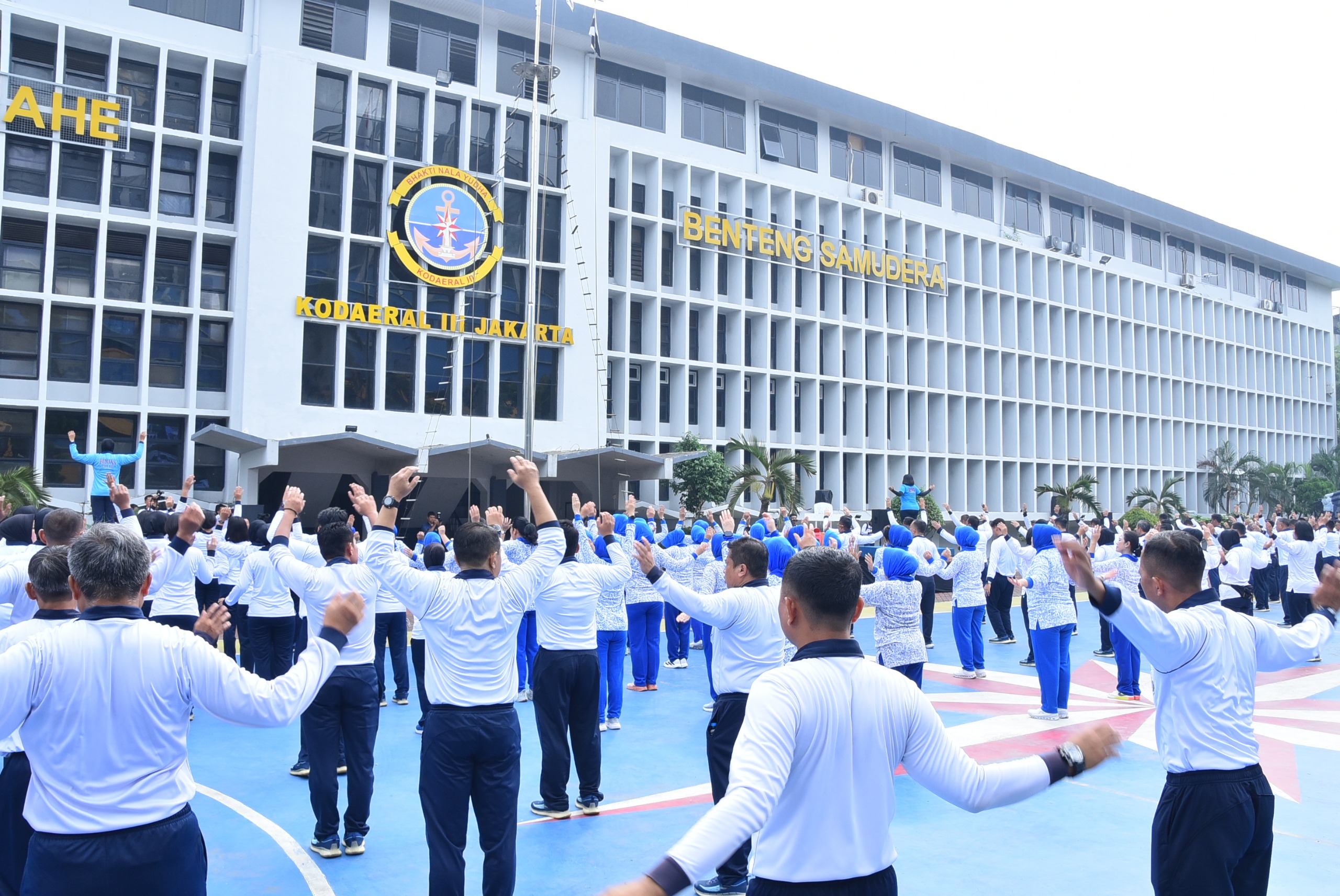 Olahraga bersama dimulai dengan senam, jalan sehat, vicon bersama dan dilanjutkan dengan ramah tamah. Komandan Komando Daerah Angkatan Laut (Dankodaeral) III, Laksamana Muda TNI Uki Prasetia, S.T., M.M. yang diwakili oleh Wadan Kodaeral III, Brigjen TNI (Mar) Dian Suryansyah, S.E., M.Tr.Hanla, melaksanakan olahraga bersama. Kegiatan ini dilaksanakan di Kodaeral III dan dipimpin oleh Kepala Staf Koarmada RI, Laksamana Muda TNI Heri Triwibowo, S.E., M.Si.