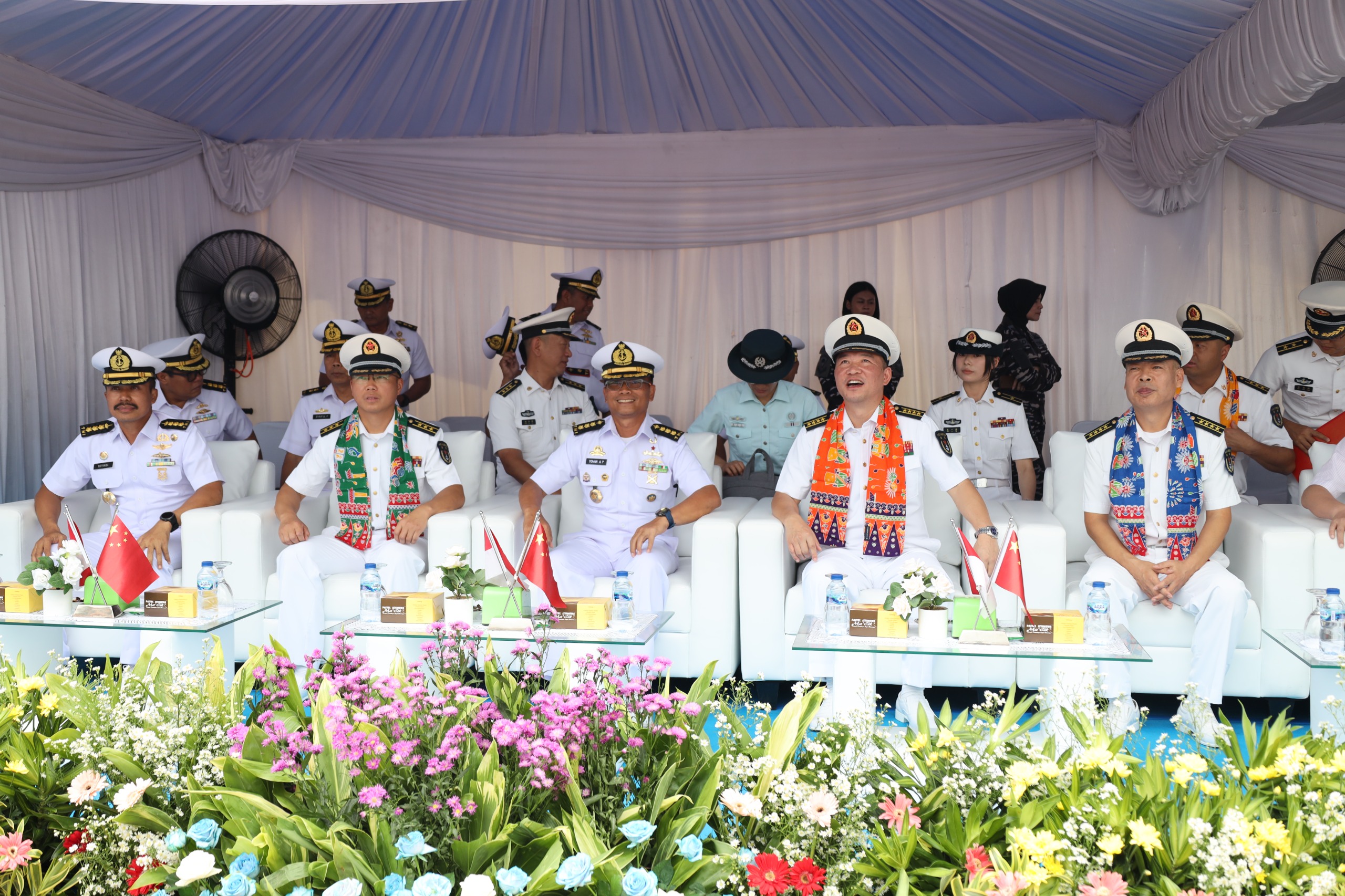 Setibanya di dermaga, para tamu dari China disambut hangat dengan tarian Sekar Jagad, yang merupakan salah satu tarian khas dari Bali. Acara berlanjut dengan pengalungan syal batik khas Betawi kepada Commander of PLAN Task Formation 989, Senior Captain Zhang Huiwu.